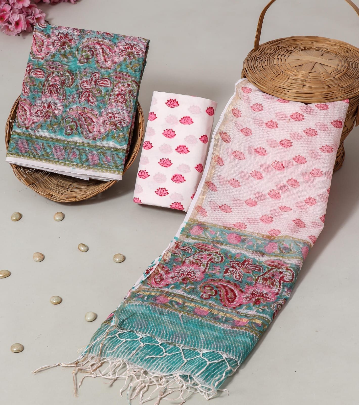 Divine’s hand block full kota doria suit (DFHFDS508)