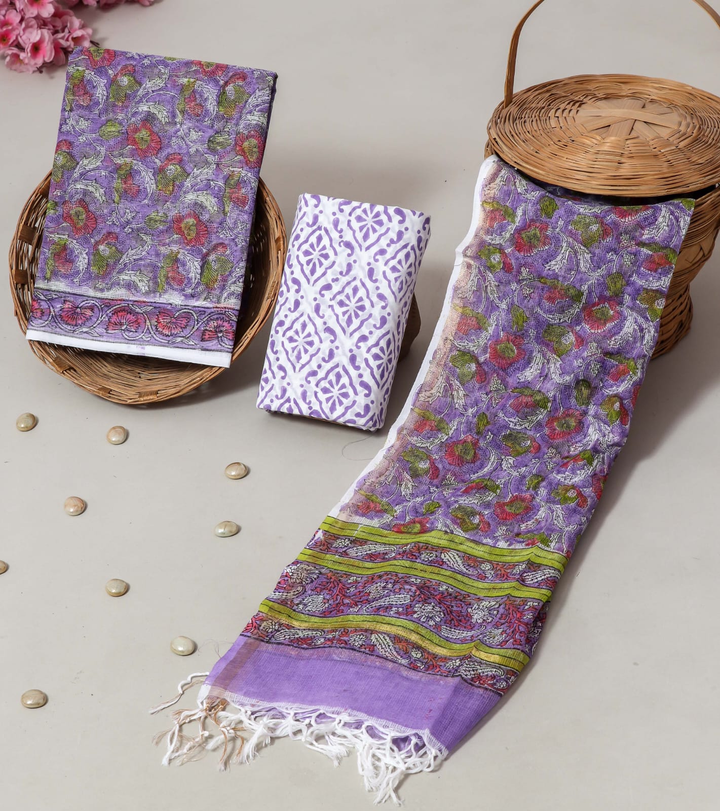 Divine’s hand block full kota doria suit (DFHFDS515)