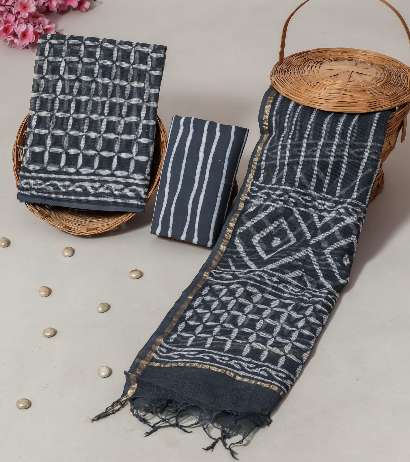 Divine’s hand block full kota doria suit (DFHFDS519)