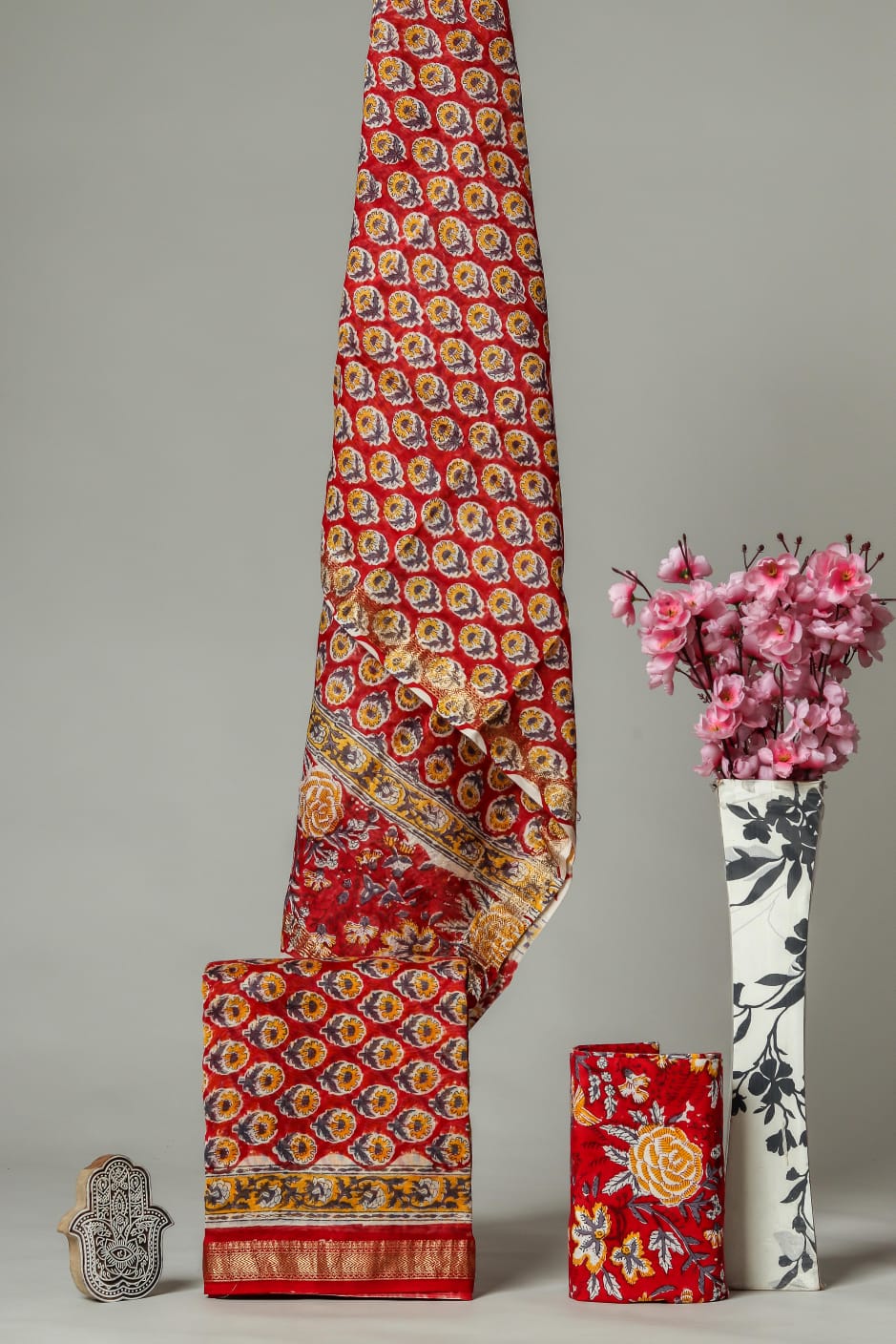 Divine’s hand block Maheshwari silk suit set (DFHMSL550)