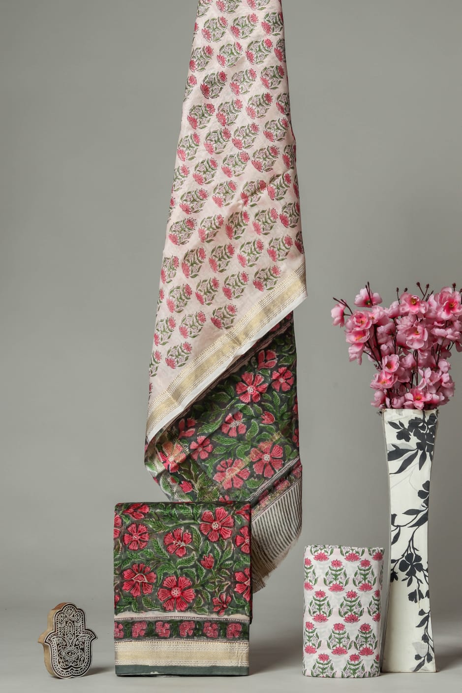 Divine’s hand block Maheshwari silk suit set (DFHMSL553)